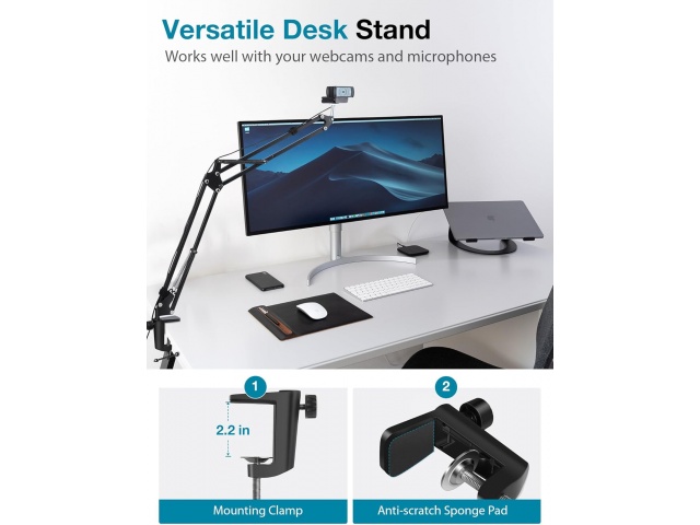 Ligero pero resistente: los brazos de doble refuerzo añaden fuerza para soportar mucho más peso, el resorte extra fuerte evita que el micrófono o la cámara web se caigan accidentalmente, generación de ruido y sacudidas. El soporte en sí pesa solo 1 libra, pero puede soportar casi 3.3 libras en comparación con la capacidad de carga de 2.2 libras de otros soportes de micrófono en el mercado. El soporte de carga mejorado lo hace lo suficientemente fuerte como para soportar micrófonos pesados.