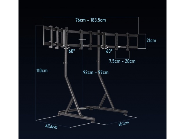 El soporte para monitor de carreras triple Thermaltake es perfectamente compatible con nuestra cabina del simulador de carreras GR500, lo que proporciona una solución completa de instalación de tres monitores para jugadores de carreras serios. Este soporte triple para monitor de carreras está fabricado en acero con acabado en polvo y soporta una carga de hasta 20 kg x 3 (44 Ibs x 3). Admite el montaje de un máximo de tres monitores de 32?, lo que proporciona a los jugadores de carreras la instalación más flexible para crear un entorno de carreras simulado inmersivo.