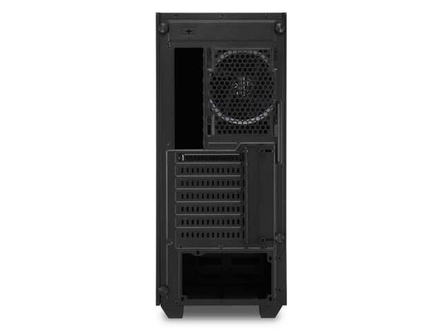 Aspecto caliente, componentes frescos. Un ventilador de 120 mm está instalado detrás del llamativo panel frontal, proporcionando un flujo de aire a través de las tomas de aire verticales a ambos lados del panel. Otro ventilador de 120 mm en la parte trasera completa el flujo de aire. Debido a que el ventilador trasero es siempre claramente visible, ha sido equipado con iluminación RGB direccionable, que complementa atmosféricamente tanto la iluminación lateral como la delantera. Se puede hacer aún más con la RGB LIT instalando hasta cuatro ventiladores más: dos en la parte frontal y dos en la parte superior de la caja. Alternativamente, también es posible la refrigeración por agua. Para ello, están previstos 6,4 cm en la parte delantera y 5,5 cm en la parte superior de la caja para un radiador con ventiladores.
